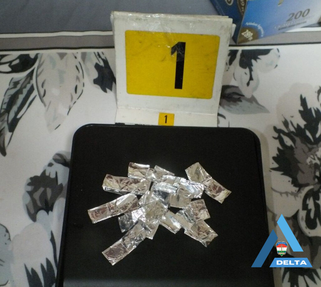 A rendőrök őrizetbe vették az 53 éves férfit, majd gyanúsítottként hallgatták ki. A kutatáskor a házában 12 alumínium-pakettben fehér, droggyanús anyagot találtak, továbbá pénzt, illetve mobiltelefonokat is lefoglaltak. A por az előzetes szakértői vélemény alapján új pszichoaktív anyag.