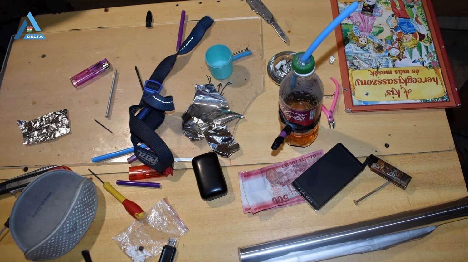 A kutatások során a rendőrök a Füst nevű új pszichoaktív anyag fogyasztásához, adagolásához és csomagolásához használt tárgyakat találtak.