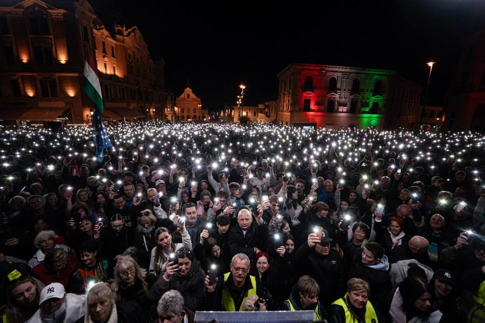 Magyar Péter hatalmas tömeg előtt hívta hajrába a szimpatizánsokat Pécsen – fiatalok ezrei töltötték meg a Széchenyi teret